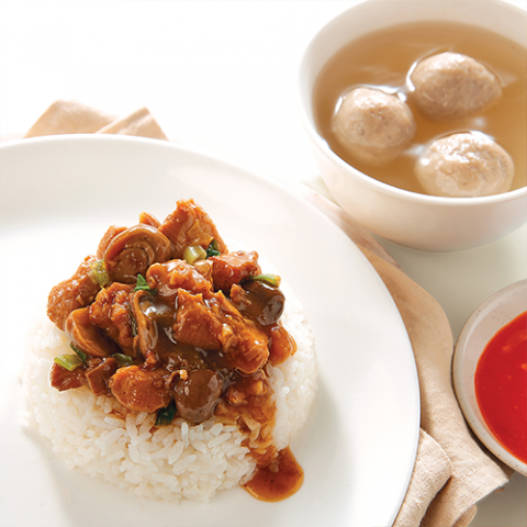 Rice with Chicken in Special GM Mushroom Sauce & Beef Balls