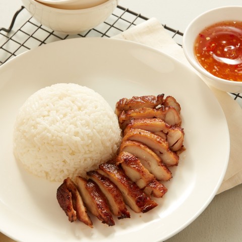 Rice topped with Fried Chicken Fillet served with a Sweet and Sour Thai Sauce